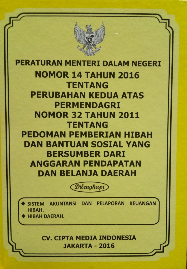 | Title | Peraturan Menteri Dalam Negeri Nomor 14 Tahun 2016 tentang Perubahan Kedua atas Permendagri Nomor 32 Tahun 2011 tentang Pedoman Pemberian Hibah dan Bantuan Sosial yang Bersumber dari Anggaran Pendapatan dan Belanja Daerah |