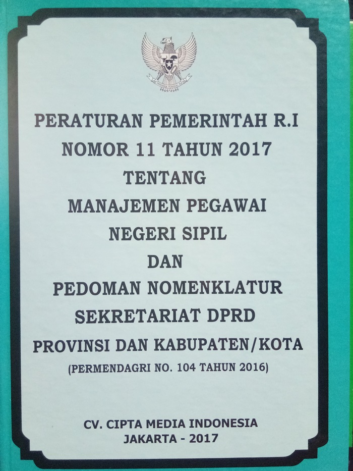 | Title | Peraturan Pemerintah RI Nomor 11 Tahun 2017 tentang Manajemen Pegawai Negeri Sipil dan Pedoman Nomenklatur Sekretariat DPRD Provinsi dan Kabupaten/Kota (Permendagri No 104 Tahun 2016) |