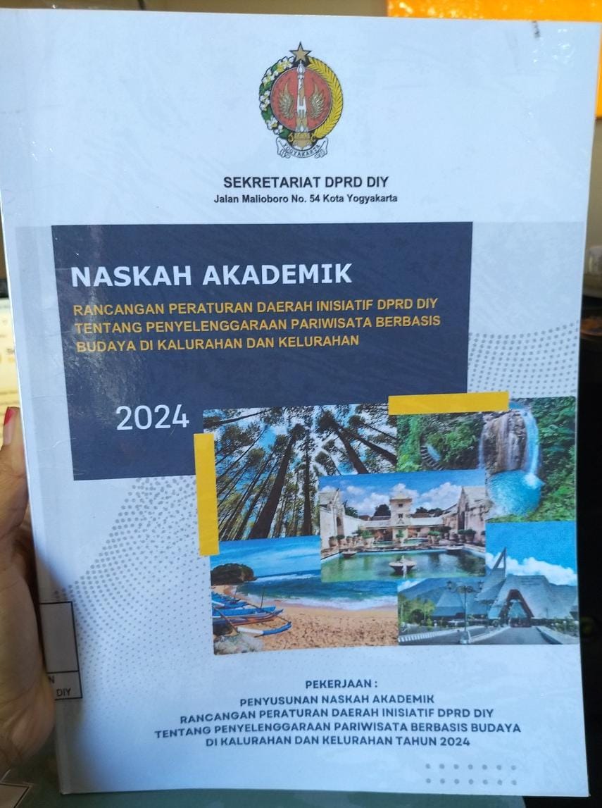 | Abstract/Notes | Penyusunan naskah akademik ini bertujuan untuk memberikan landasan konseptual dan kebijakan yang jelas dalam menyusun program-program yang dapat mendorong pertumbuhan pariwisata berbasis budaya yang menguntungkan bagi masyarakat, menjaga keberlanjutan lingkungan, dan tetap menghormati nilai-nilai budaya lokal. Kami berharap bahwa hasil dari penyusunan naskah ini dapat memberikan kontribusi nyata dalam menciptakan kebijakan yang lebih terarah dan efektif dalam pengelolaan pariwisata berbasis budaya di tingkat kalurahan dan kelurahan. |