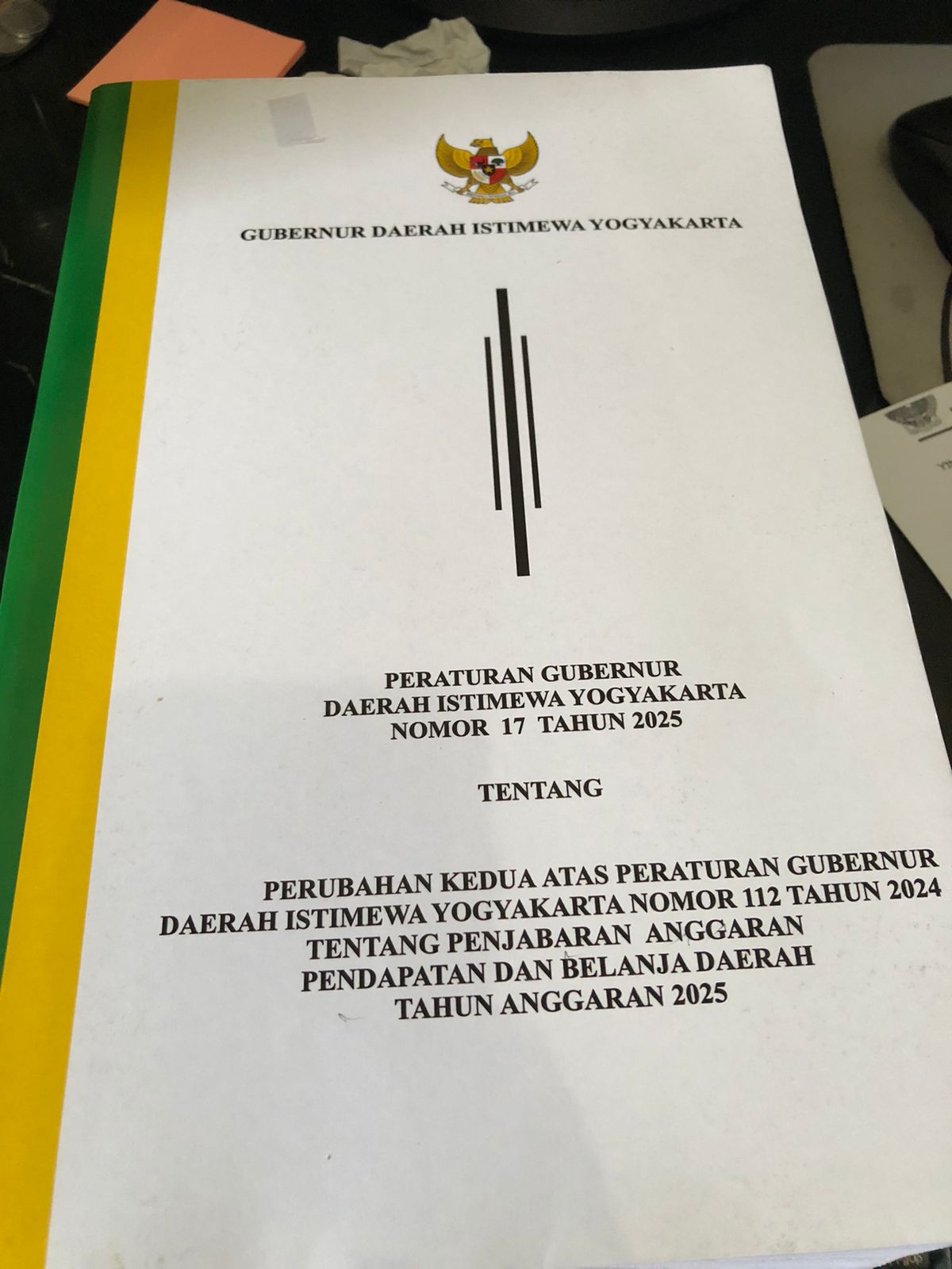 | Abstract/Notes | PERUBAHAN KEDUA ATAS PERATURAN GUERNUR DAERAH ISTIMEWA YOGYAKARTA NOMOR 112 TAHUN 2024 TENTANG PENJABARAN ANGGARAN PENDAPATAN DAN BELANJA DAERAH TAHUN 2025 |