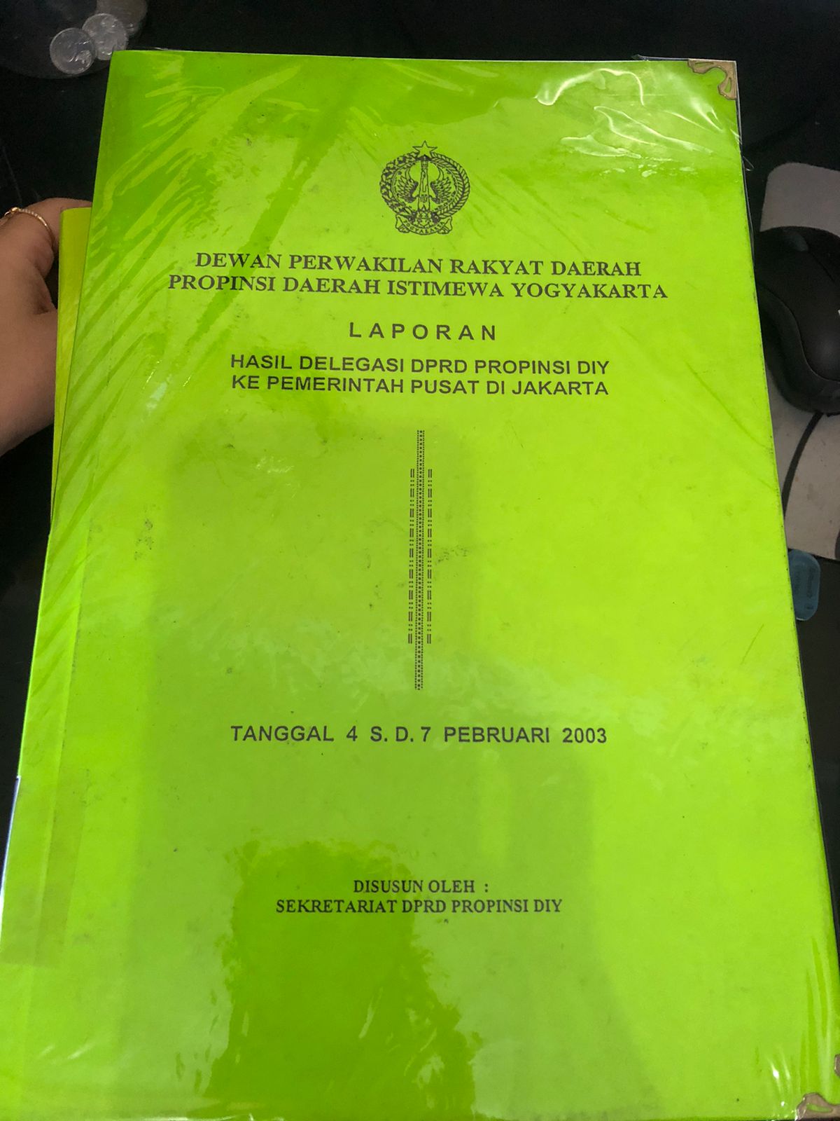 | Title | LAPORAN HASIL DELEGASI DPRD PROVINSI DIY KE PEMERINTAH PUSAT DI JAKARTA |